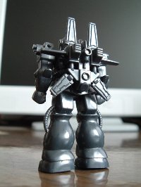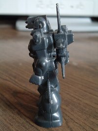 またこのザクフリッパーは、同じ偵察機の「ザク強行偵察型」とフォルムや細部に共通点が多かったと記憶していますが、このチョコスナック版では、PART5のザク強行偵察型と共通するパーツはありません。